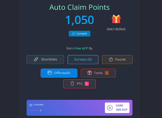 Кроме стандартного заработка на просмотре сайтов и видео, кран предлагает задания и прохождение опросов. За выполнение 5-20 заданий начисляются очки активности. Дополнительно их можно получить каждые 30 минут.