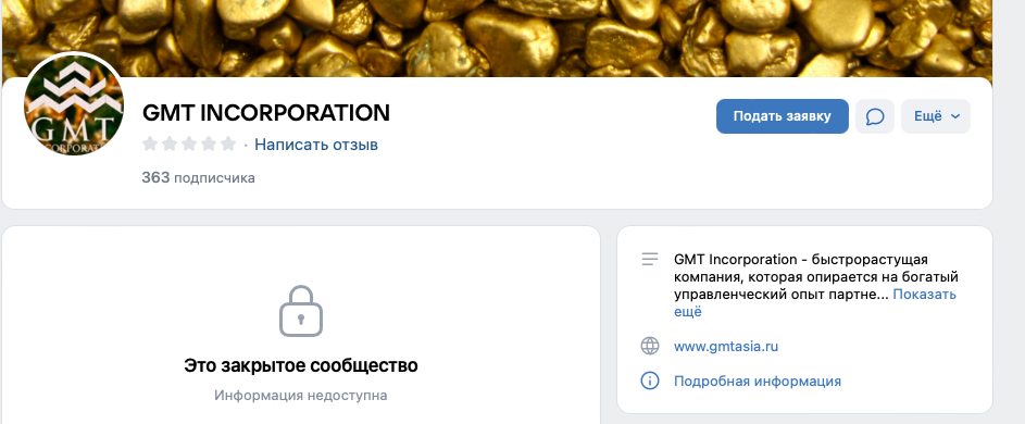 Имеется и закрытая группа ВК