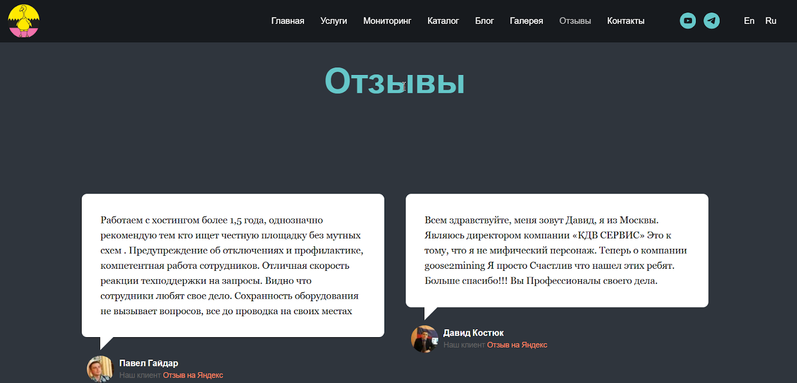 - отсутствие отзывов с какой-либо критикой – потенциальному клиенту Goose2mining ненадежно верить только положительным комментариям, они могут оказаться поддельными и преувеличивать качество обслуживания;