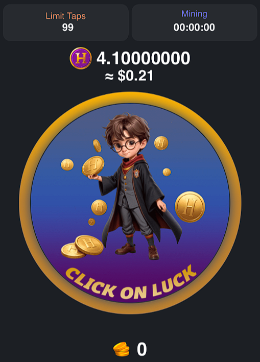Зарабатывать токены Harry Coin можно в игре Click of Luck. Запустить ее получится только со смартфона, в веб-версии и на ПК она недоступна. В самом приложении нас ждет классическая тапалка, которая напоминает тот же Hamster Kombat. Используется похожее оформление и механики.