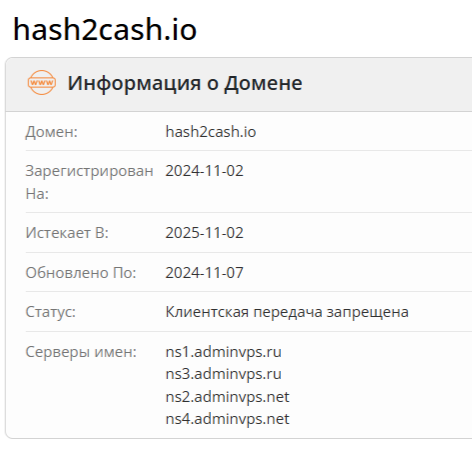 Домен hash2cash io был зарегистрирован 2 ноября 2024 года. По информации сайта за этот период услугами организации воспользовались 4 700+ клиентов. Наработать подобную клиентскую базу с нуля могут лишь компании, имеющие высокий уровень доверия. Этого фактора нет у упомянутого проекта.