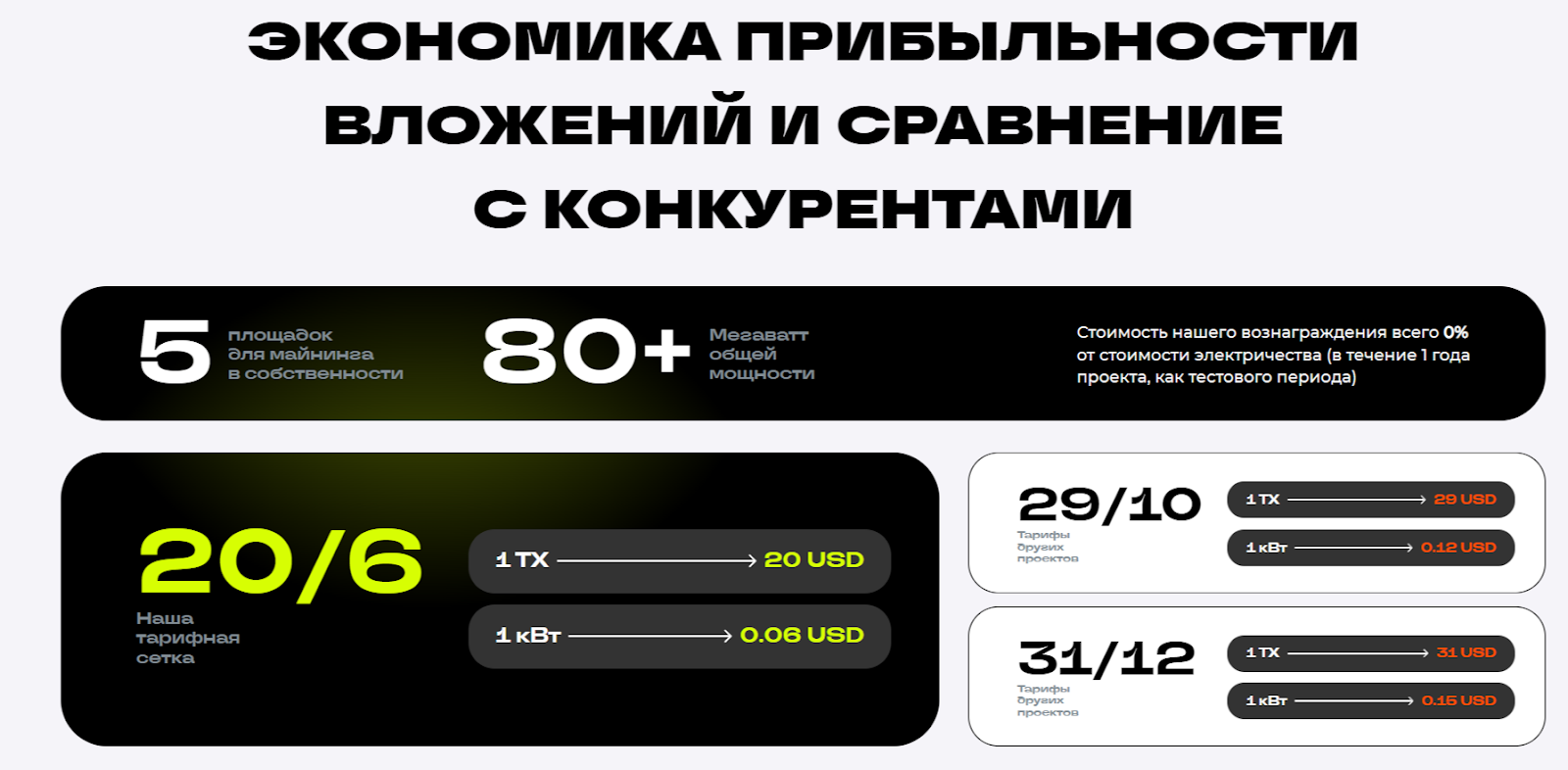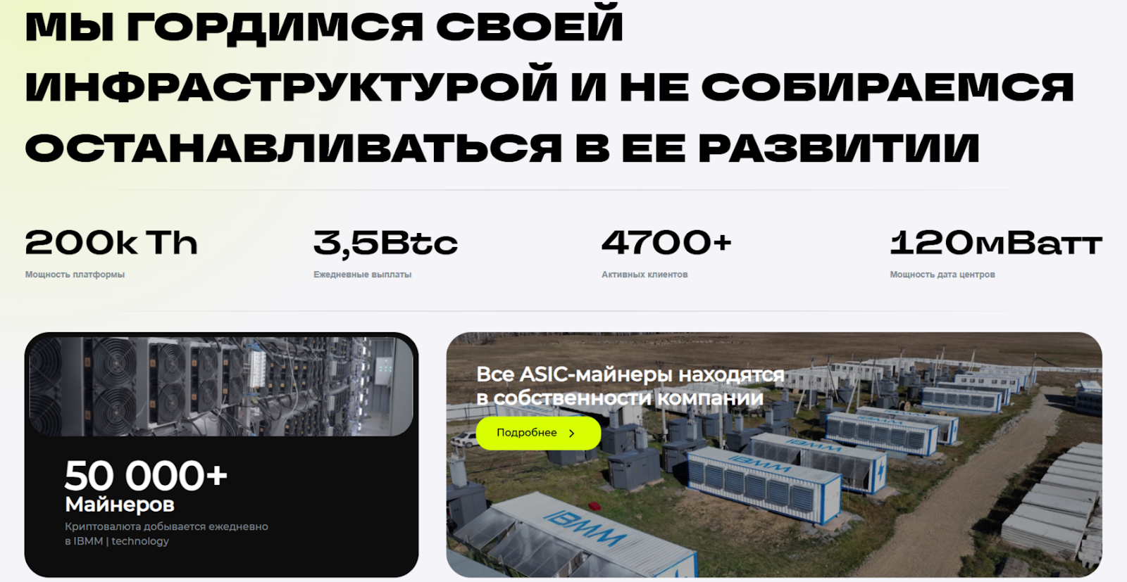 Официальный сайт платформы для майнинга не отличается оригинальностью и эксклюзивностью. Он представляет собой банальный одностраничник, все разделы которого ведут в футер. На портале нет информации о создателях, регистрационных документах и лицензии. Здесь можно найти только упоминание как организаторы гордятся своей инфраструктурой.