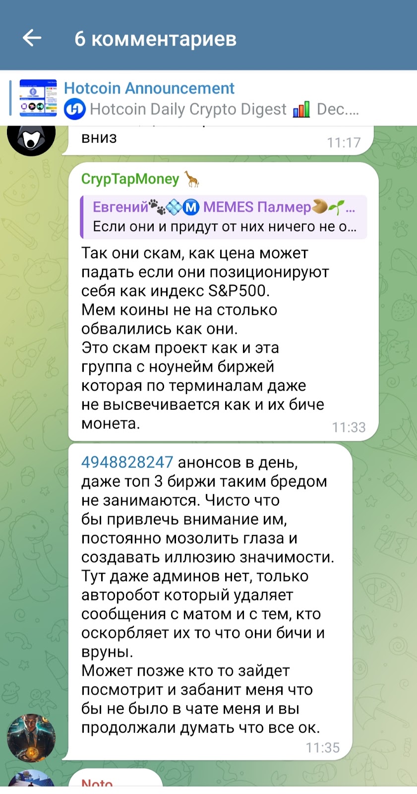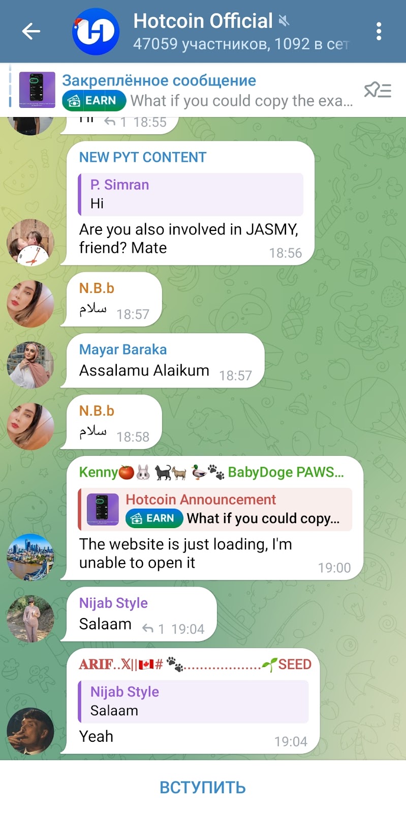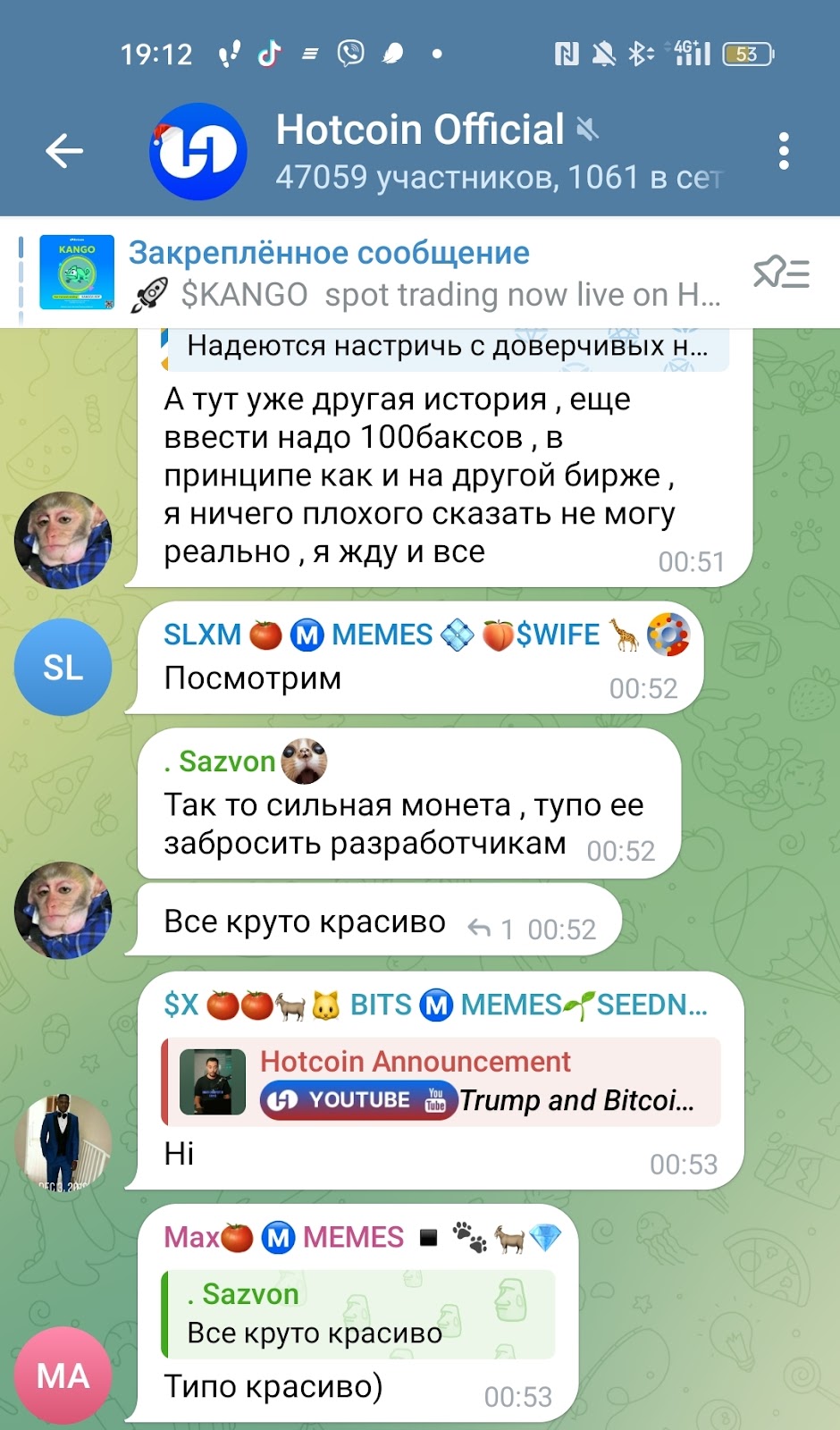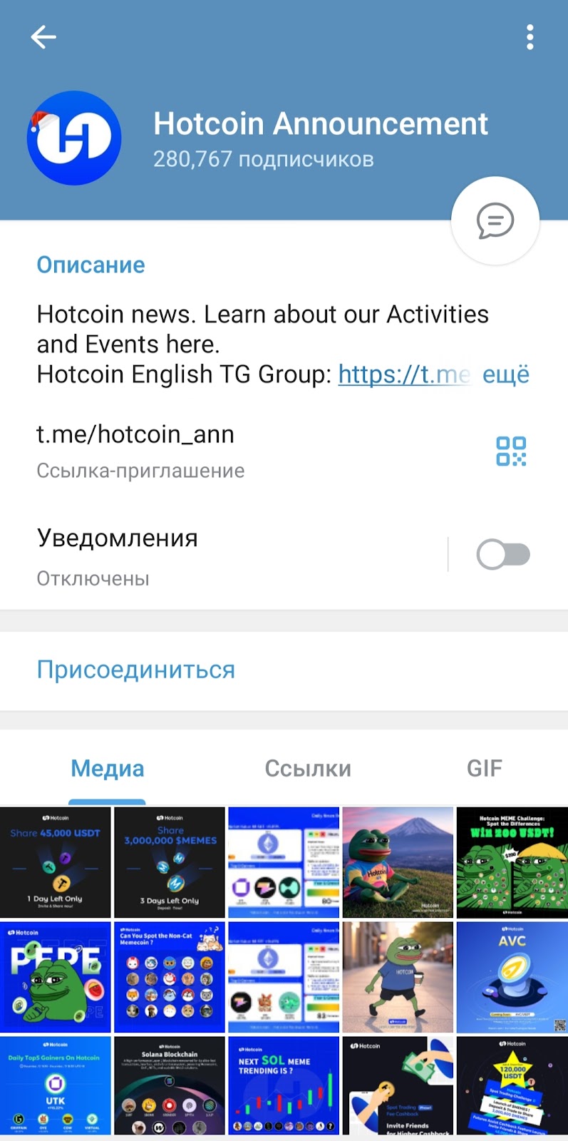 Официальный канал, Hotcoin Announcement, собрал 280 тысяч подписчиков, среди которых представители российского комьюнити, активные в комментариях.