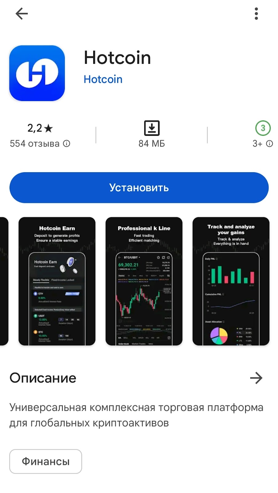 О «Хоткоин глобал» известно меньше: сайт сделан не так развёрнуто, зато есть приложение.
