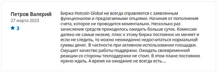 Валерий сетует на высокие комиссии «Хот коин глобал», неточности при выплатах и долгое ожидание.