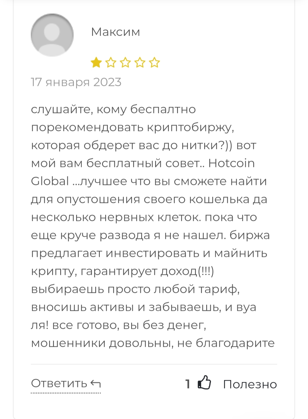 По мнению пользователей сайтов-отзовиков, не только Hotcoin com — лохотрон. Им считают и «Хоткоин Глобал».