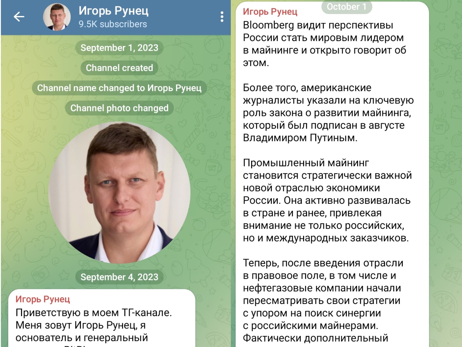 Игорь Рунец ведет личный Телеграм канал Igor Runets, который поддерживают 9.5k подписчиков.