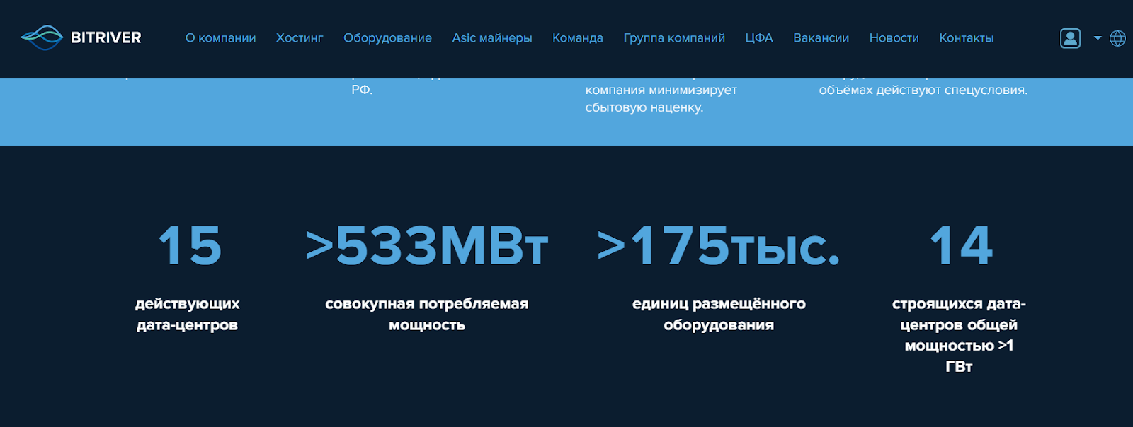 Ознакомиться с особенностями компании можно на сайте Bitriver Com. По предоставленным данным, оператор является лидирующим в индустрии ЦОДов.