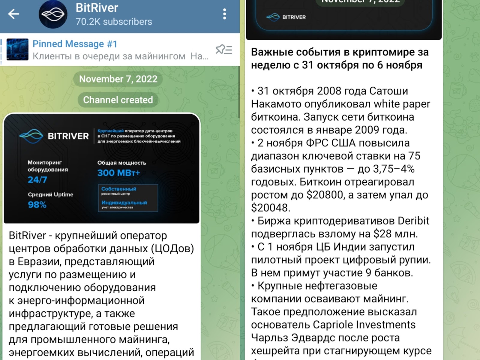 Также есть тг канал Bitriver Ru, который посвящен компании. Он функционирует с 7 ноября 2023 года.