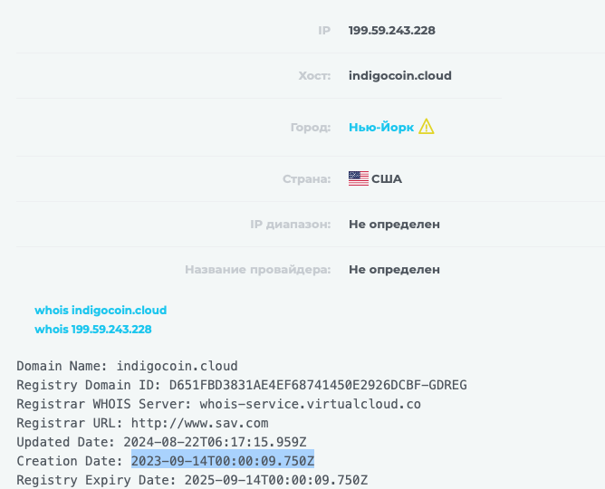 В настоящий момент доменное имя indigocoin cloud свободно. Часть пользователей сейчас просто не может получить доступ к своим заработанным средствам.