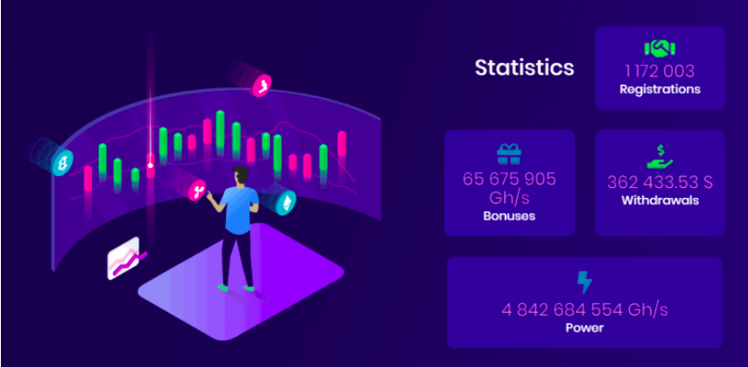 - были предусмотрены бонусы (например, за регистрацию, а также бесплатное временное повышение мощности майнинга при пополнении счета);