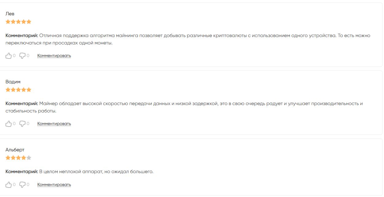 В основном в отзывах пользователи довольны техникой «Айполло». Хвалят за энергоэффективность, способность переключаться между монетами и хорошее соотношение хешрейта к энергопотреблению.