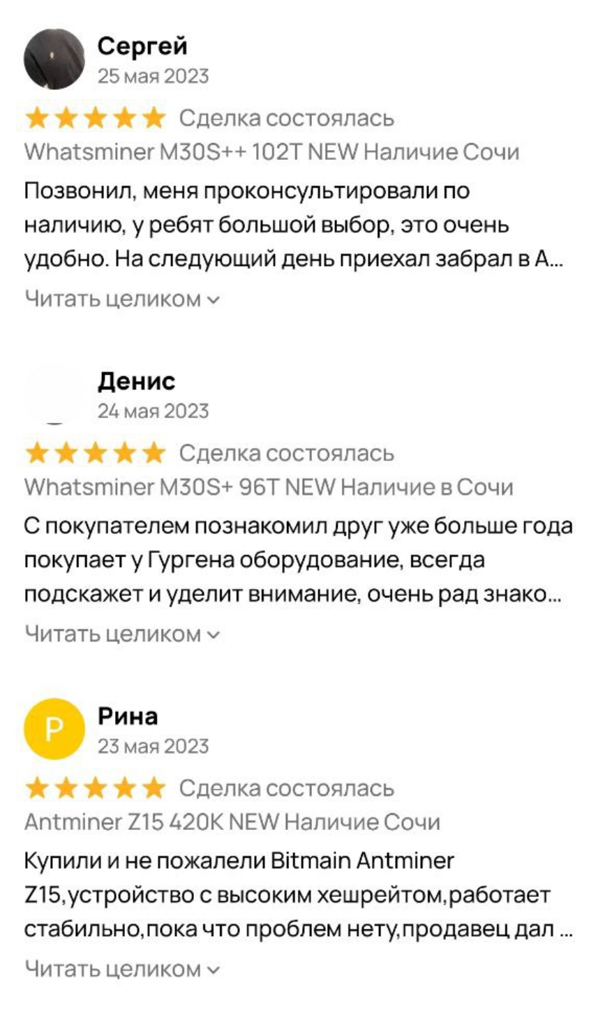 Также Kogo Mining предлагает свои услуги и через Авито. В профиле компании можно посмотреть актуальное оборудование в наличии с ценами. Регулярно устраиваются распродажи и скидки.