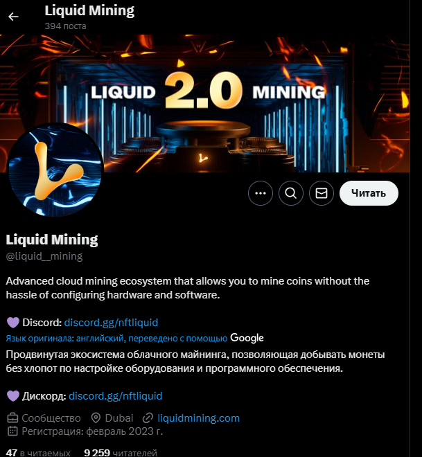 Liquid Mining в соцсети Х