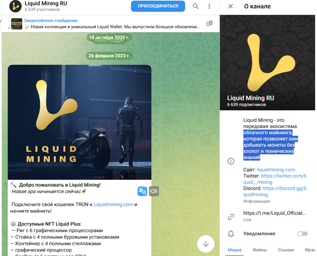 Группа Liquid Mining RU в Телеграме