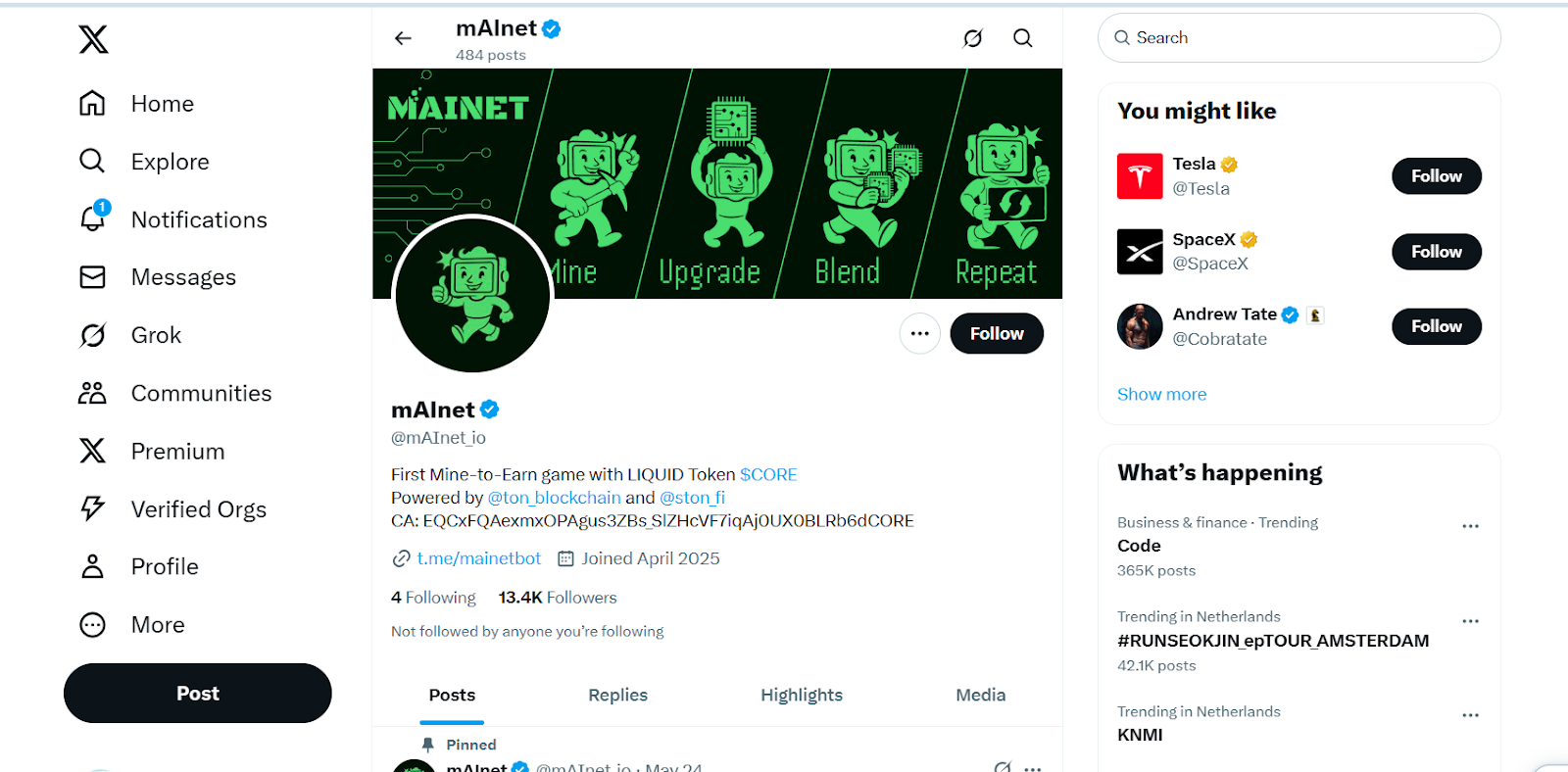 Есть и Twitter @mAInet_io с 13,4К фолловеров, где команда выкладывает регулярные обновления, акции, конкурсы и новости.