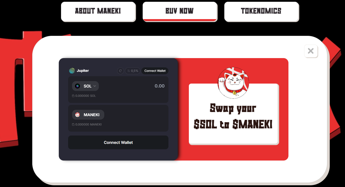Maneki криптовалюта, запущенная на блокчейне Solana в апреле 2024 года. Она относится к мемкоинам. Токен стал популярным благодаря своей тематике. Основной персонаж токена — японский символ удачи — Maneki Neko, известной как «кот, который манит». Это фигурка кошки с поднятой лапкой. По поверью, она привлекает удачу и успех. Maneki Neko широко используется в японской культуре. Ее часто ставят в домах, автомобилях. Для многих японцев она служит талисманом, привлекающим богатство и клиентов. А еще ее часто дарят в качестве сувенира дорогим гостям.