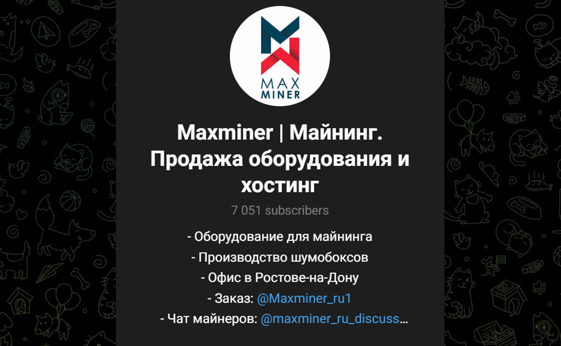 Основной телеграм-канал проекта собрал более 7 тысяч подписчиков. Последние посты просматривает до 2 тысяч человек. Канал появился в июле 2023 года. С тех пор заметно развитие в линейке предлагаемых товаров. Комментарии для пользователей закрыты, но есть отдельная группа с чатом. Для заказа товаров и по прочим вопросам нужно обращаться к Maxminer ru1.