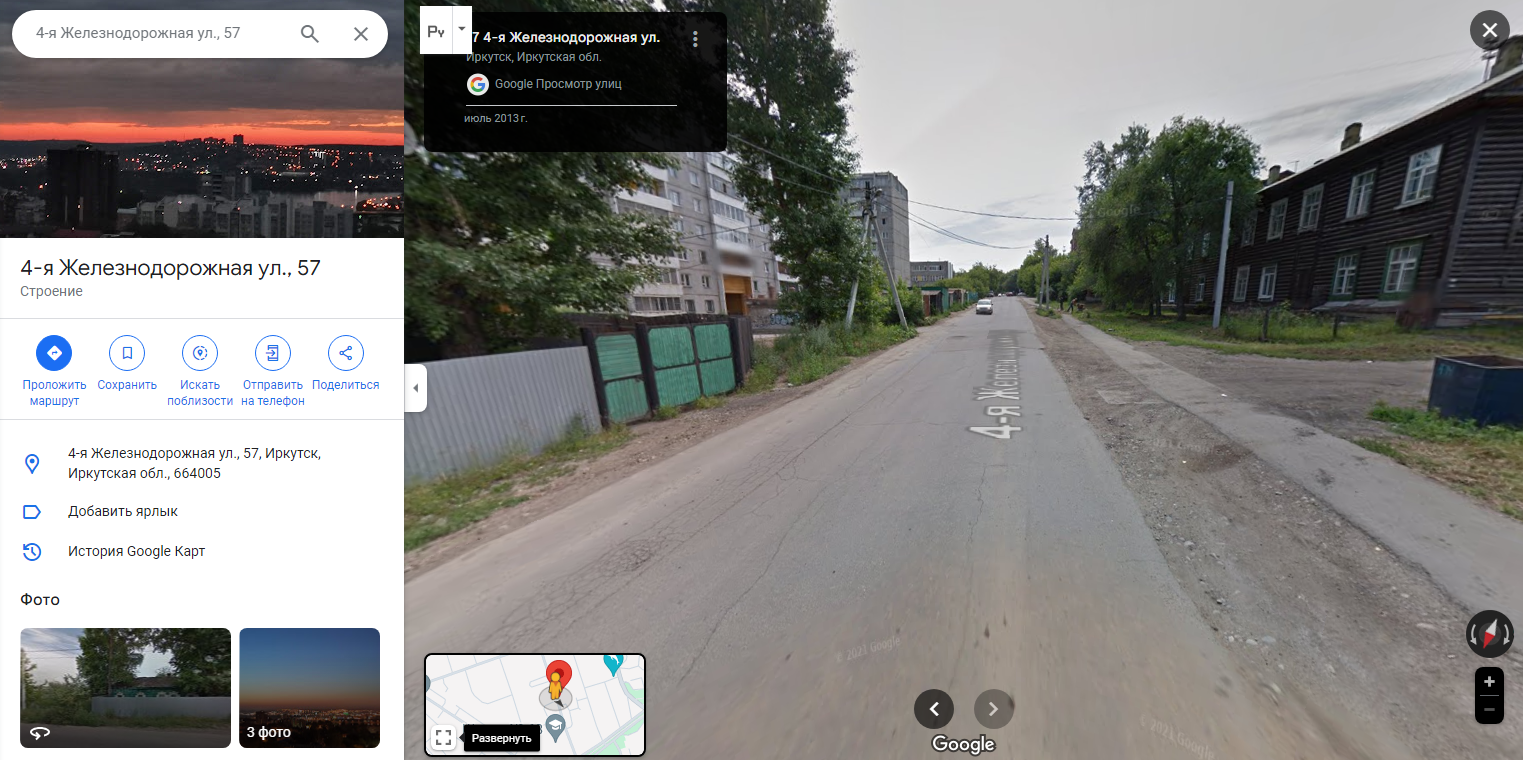 Проверка началась с простого: с анализа сайта. Во вкладке «Контакты» отмечен адрес компании: город Иркутск, ул. 4-ая Железнодорожная, 57. Однако, согласно карте, ничего, что походило бы на фирму Miner Group, нет.