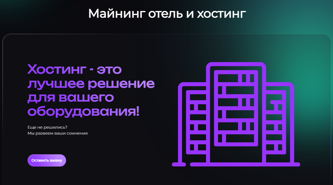 Это компания, занимающаяся размещением майнингового оборудования в своих дата-центрах. Работает с конца 2021 года — начинали с продажи расходников и б/у-оборудования для майнинга. В феврале 2022-го взяли курс на хостинг — увидели растущий спрос и начали размещать оборудование клиентов на собственных дата-центрах в Иркутской области.