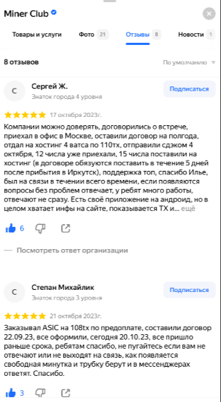 Отзывы про Minerclubshop разные. Как оно и принято, на сайте компании в отзывах люди хвалят продукты компании. Но нет гарантии, что эти отзывы писали реальные пользователи.
