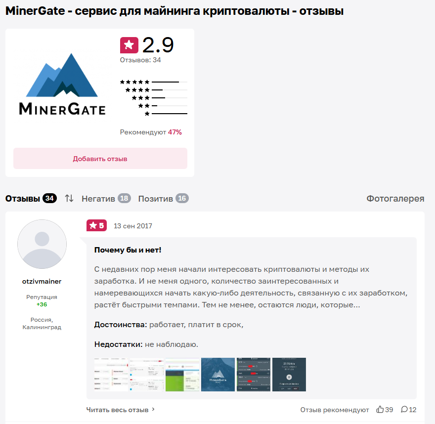 Отзывы о MinerGate можно найти на множестве ресурсов в интернете, ведь проект работал порядка 10 лет и стал достаточно популярным. Для анализа будут учитываться только комментарии, оставленные на проверенных независимых ресурсах с наличием модерации.