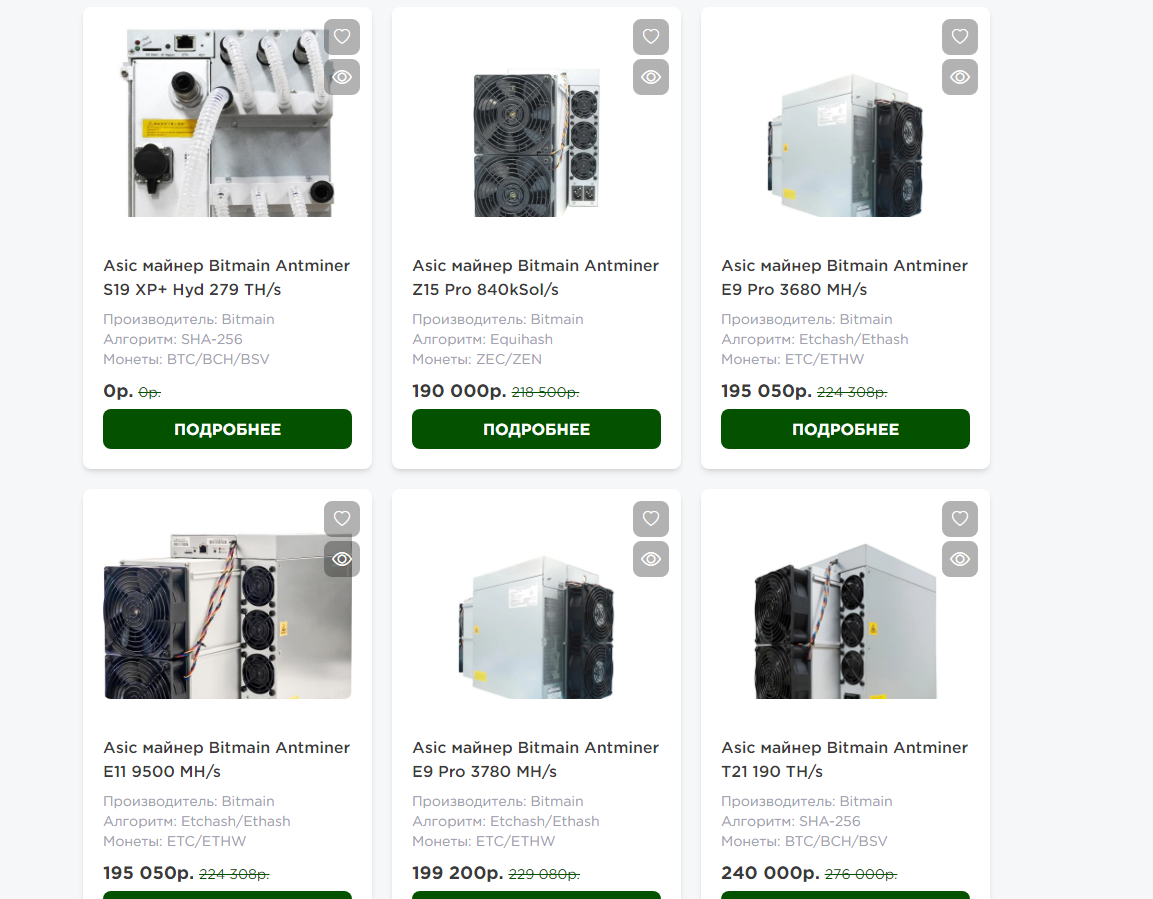 - Bitmain Antminer E9 ПРО 3 680 MH/s — стоит 195 050 р.;