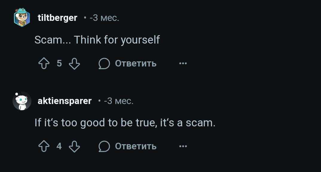 Анализ отзывов о Майнинг Рейс показал, что большинство с недоверием относится к этому проекту. У многих возникают сомнения по поводу возможности заработка из-за обещания слишком высокого дохода и отсутствия доказательств легальности. Mining Race называют скам проектом. Вот что пишут о нем майнеры: