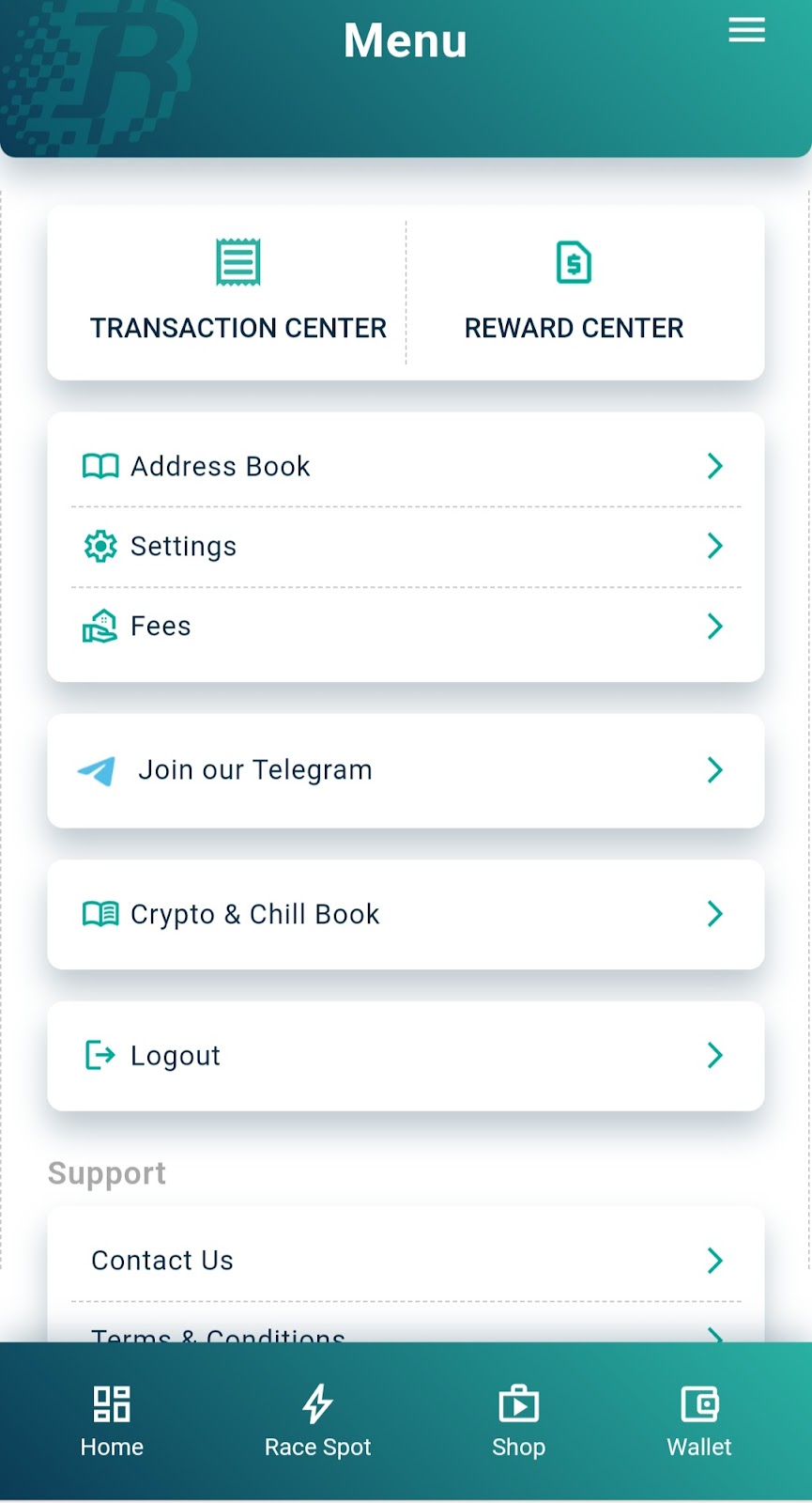 На экране Mining Race в разделе кошелек можно найти кнопку вывести добытые токены. Но проверить эту функцию до внесения денег и получения биткоинов невозможно.