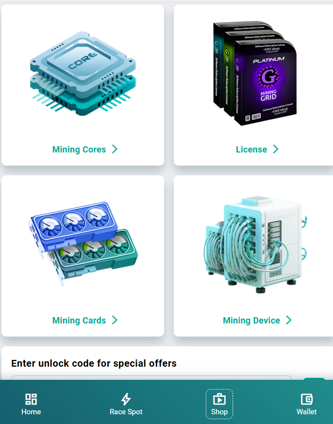 В разделе Shop можно докупать карты и другие девайсы для улучшения процесса майнинга. Чем больше инвестирует майнер, тем выше будет его доход, по заверению разработчиков проекта.
