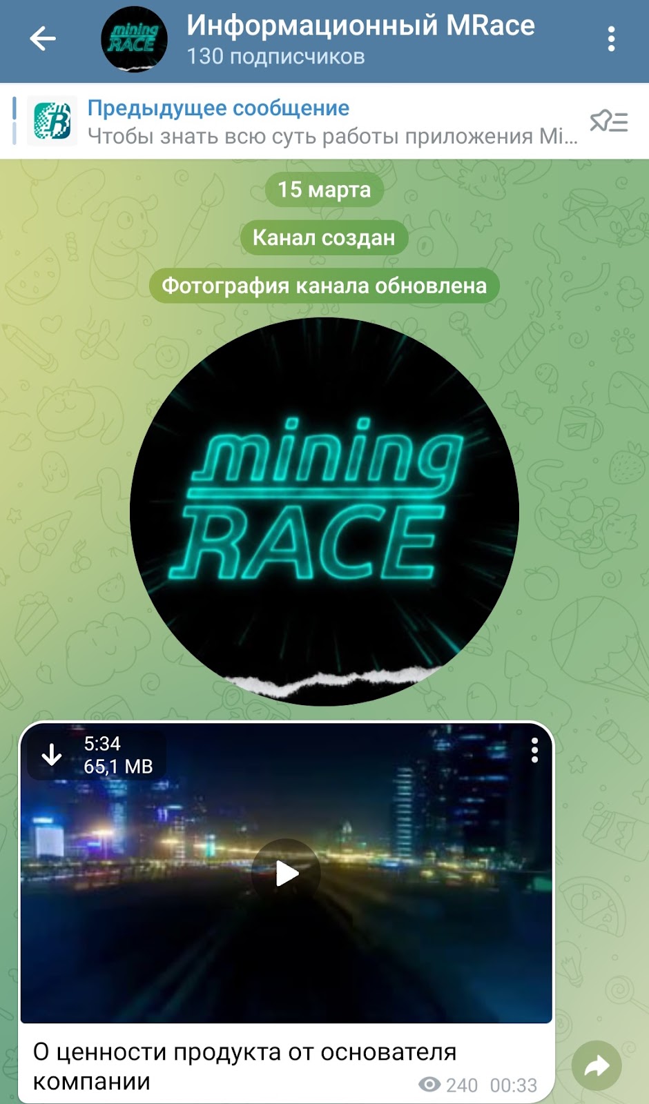 Комментирование на канале закрыто. Реакции оставлять можно. Но аудитория малоактивна. Посты просматривает 100-130 человек. При этом никто не выражает мнение по поводу публикаций. Канал ведется на русском языке. Но также есть его англоязычная версия Miningrace. Группа ведется с 19 октября 2023 года. У нее 7,2К подписчиков. Контент аналогичен русскоязычному сообществу. Активность аудитории не превышает 1%.