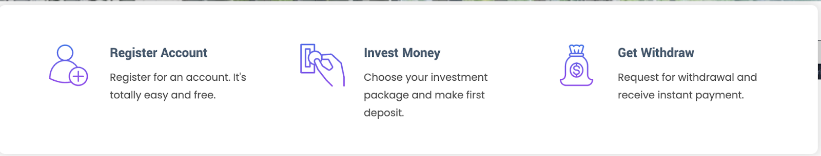 Основной продукты Minings Limited — это инвестиционные пакеты с заранее заданными условиями. Пользователю предлагается выбрать тариф с определенными сроком работы и обещанным ежедневным процентам. Минимальный порог входа невысокий, что делает проект доступным для широкой аудитории, а сами планы рассчитаны на короткую дистанцию.