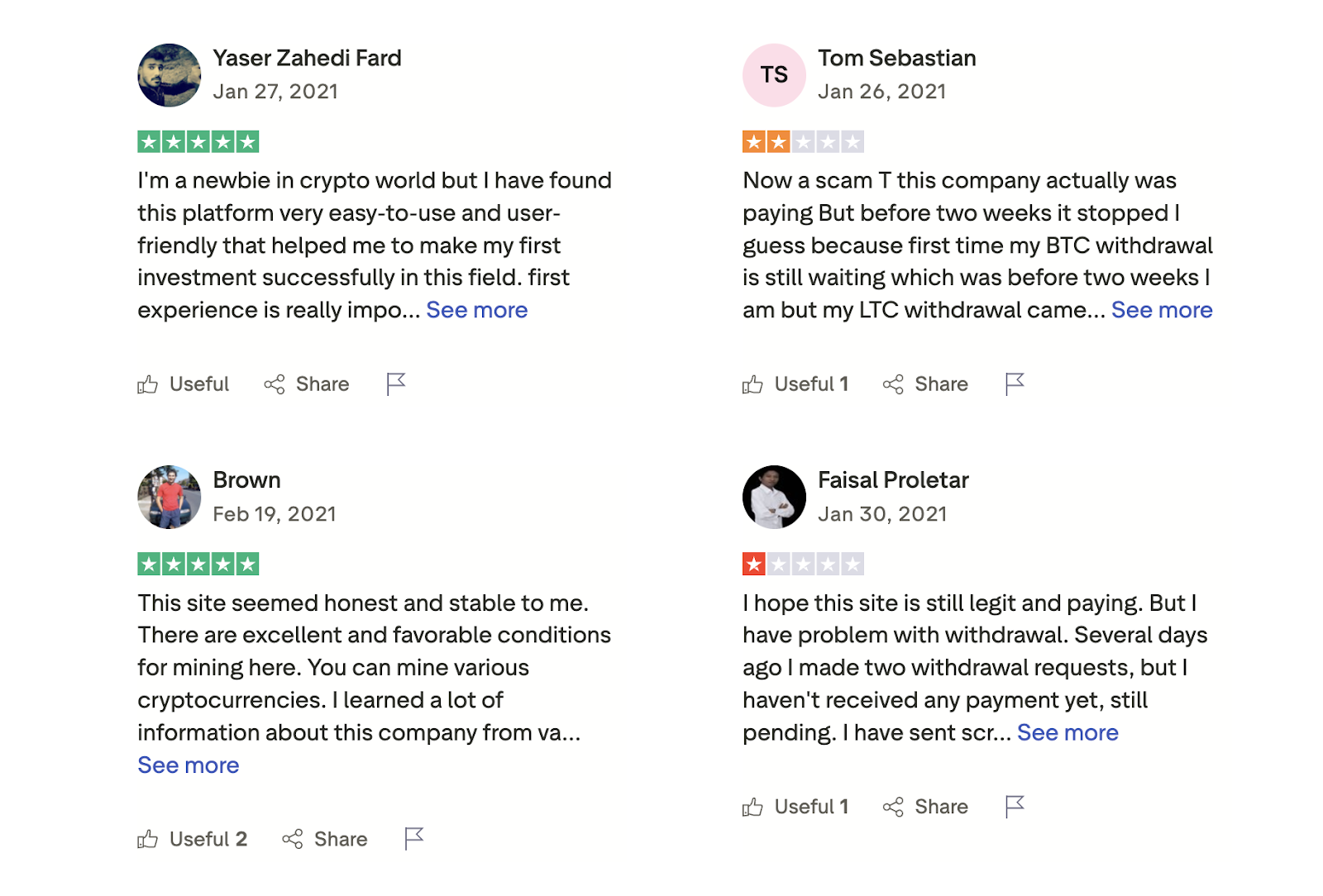 Отзывы о Minings Limited Com в сети носят противоречивый характер. Часть пользователей отмечают простоту интерфейса и низкий порог входа. Однако наряду с позитивом есть и негативные отклики. В своих отзывах о Minings Limited пользователи указывают на то, что сначала выплаты действительно проходят, но позже возникают задержки. Есть также и предположения о скаме.