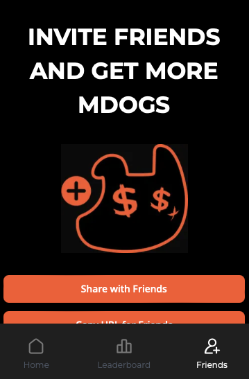 Третий раздел Телеграмм Money Dogs — друзья. За каждого приведенного человека игрок получает бонус. Плюсом можно забрать награду за 5, 10 и более человек в тасках.
