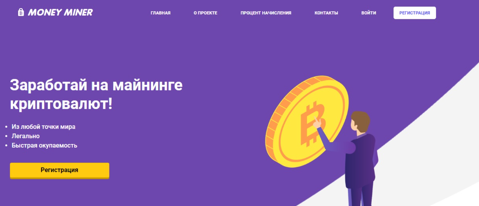 Проект Money Miner специализируется на облачном майнинге криптовалют. Клиентам предлагают совершать вклады и зарабатывать деньги. Не придется приобретать майнинговые фермы, компания предоставляет оборудование в аренду. В настоящий момент сайт работает с перебоями, возможны проблемы с доступом. Ниже рассмотрим работу проекта, проанализируем отзывы и вынесем вердикт, стоит ли ему доверять.