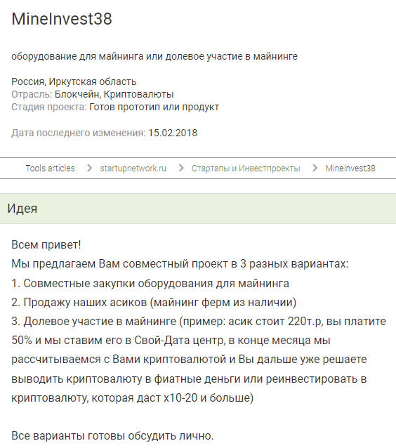 Строчка «реинвестировать в криптовалюту, которая даст х10-20 и больше» вызывает только улыбку. Попытка в маркетинг удалась, собственник сумел привлечь средства и теперь свободно работает в нескольких городах.