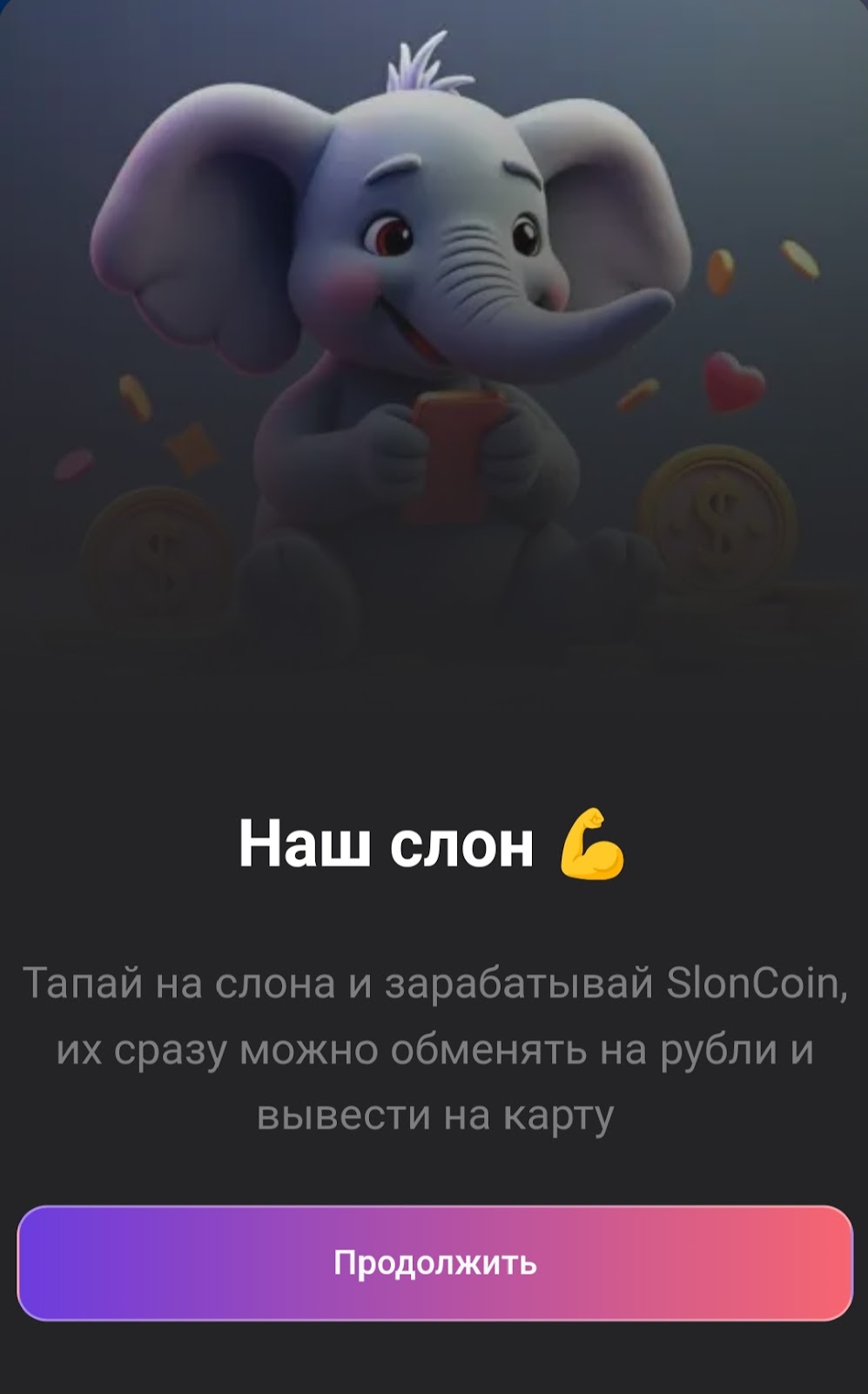 Наш Слон — тапалка в Телеграмм, появилась недавно. Игра предлагает тапать на слона и зарабатывать реальные деньги — рубли и Тон. Вывод готовы осуществить в первый же день без каких-либо задержек, переводы осуществляются на банковские карты. В интернете отзывов о тапалке пока нет. В обзоре выясним, действительно ли в игре Sloncoin можно неплохо заработать, или это очередной скам проект.