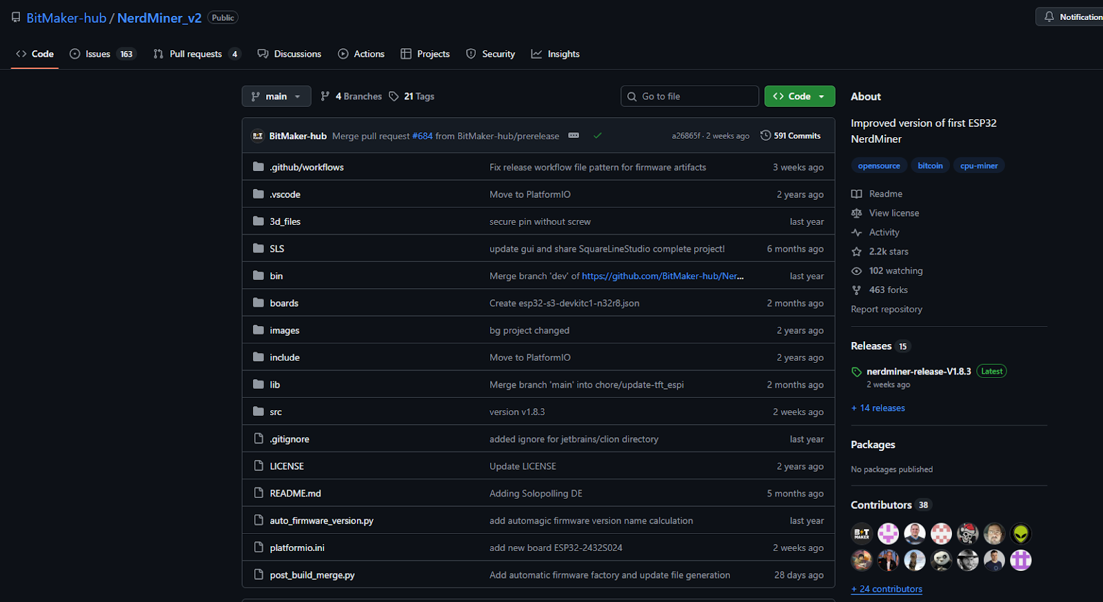 В интернете выложено большое количество прошивок разработанных для Nerd Miner v2. Они позволяют разогнать устройство даже до скорости х2. Но полученный хэшрейт будет все равно несоизмеримо маленьким. Это касается даже не общего хэшрейта всех пулов для майнинга, а просто если сравнить мини-майнер с нормальным. Скачать прошивку можно, например, на GitHub: