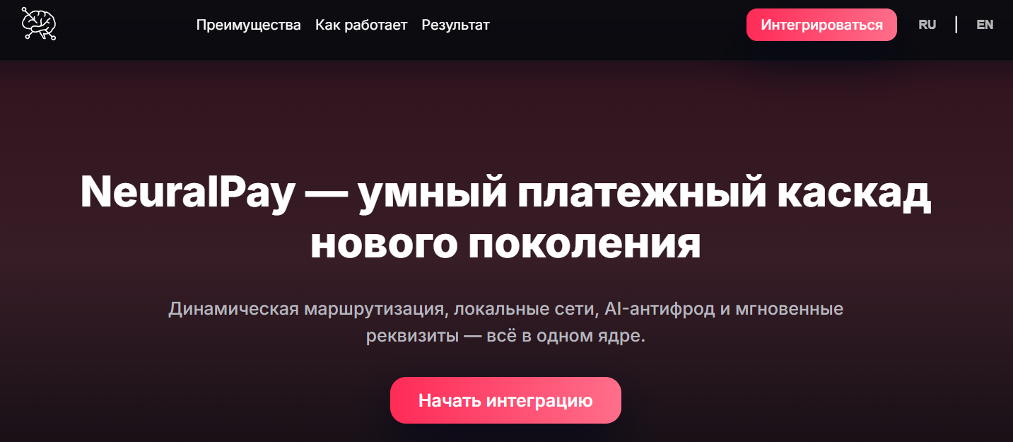 На сайте написано, что время ответа каскада составляет пять секунд, за день система может обработать 15 000 заявок, а результаты по внедрению сервиса на каком-то проекте позволили увеличить конверсию на 31%. Подтверждений этому нет, цены на услуги на NeuralPay space не представлены, а проверка домена через Web Names показала, что его зарегистрировали только в декабре 2025 года.