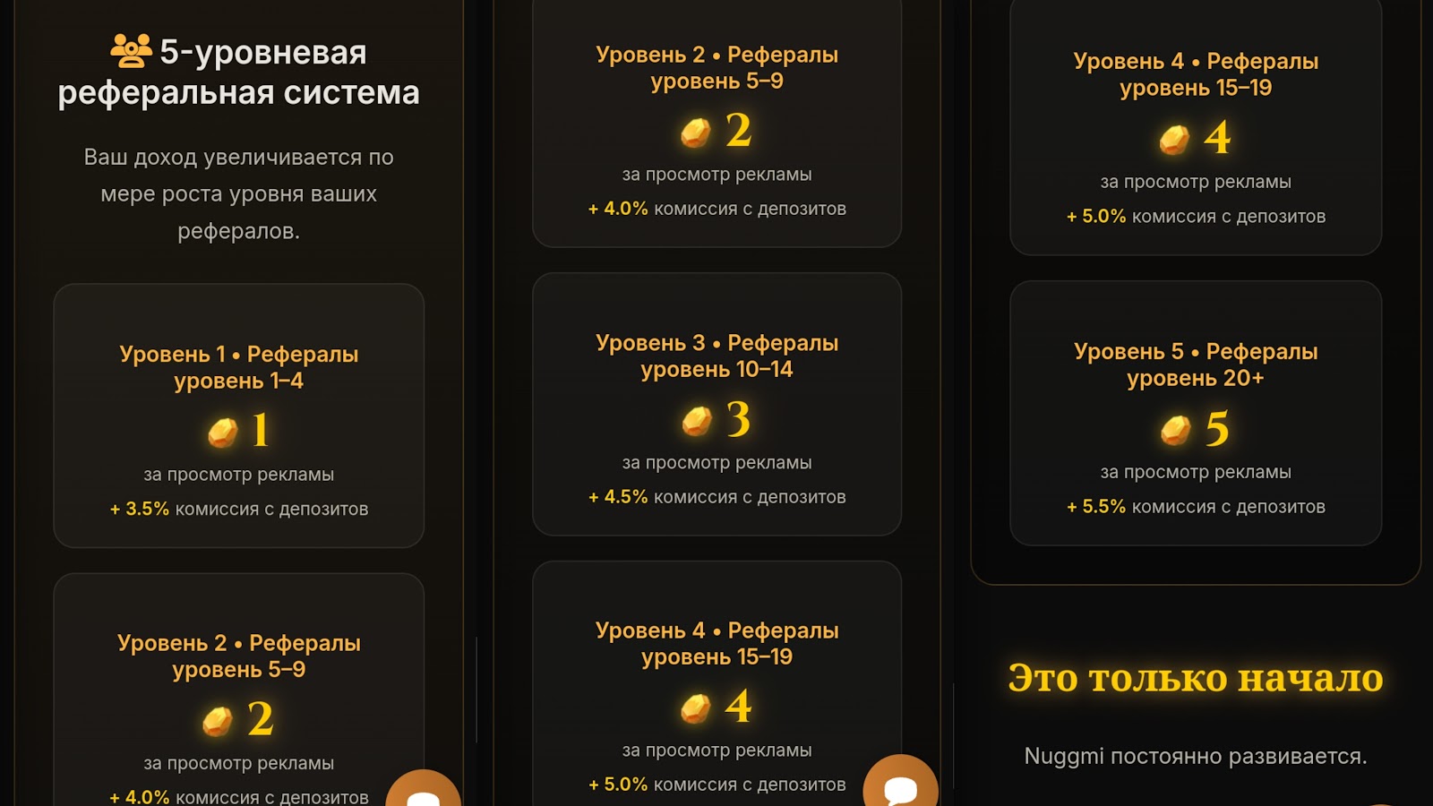 До конца 2026 года разработчики желают открыть торговую площадку для виртуальных обменов предметов. Плюс, думают об обновлении мобильного интерфейса, сезонных наградах и прочем. Создатели размещают следующие сведения о Nuggmi: