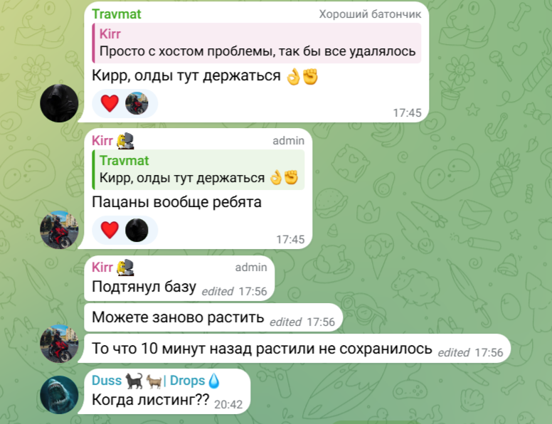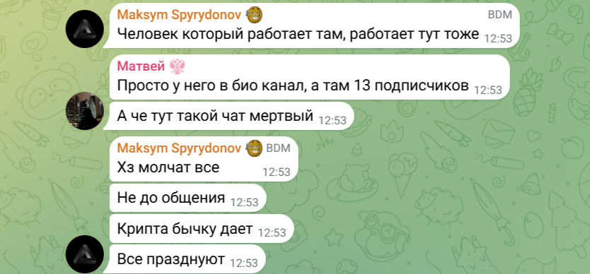 Найти отзывы о стикерах Picardia и самой игре оказалось сложной задачей, ведь проект плохо развит, а число подписчиков небольшое. Единственное место, где можно узнать мнения людей — чат экосистемы Пикардия в Телеграмме. Здесь периодически появляются вопросы касательно листинга, аирдропа и других важных моментов. Некоторые пользователи высказывают подозрения, что проект уже “мертвый”.