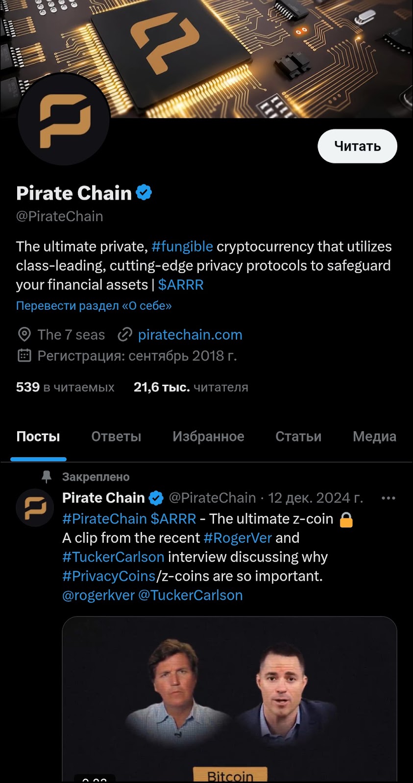 - Страница в соцсети Х Piratechain. Была создана в сентябре 2018 года, имеет 21,6 читателей. Контент, аналогичен телеграм-сообществу.