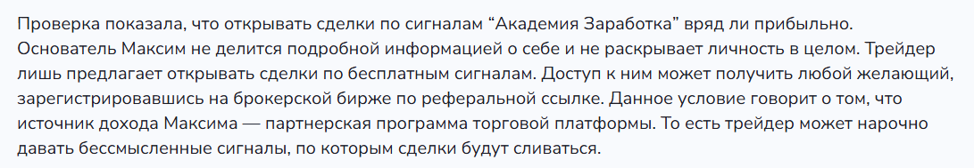 - Практически полное отсутствие упоминаний и отзывов в сети о проекте «Академия Заработка» говорит о его низкой популярности, что исключает возможность опереться на чужой опыт при оценке рисков.