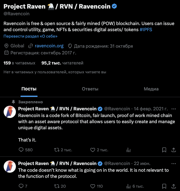 Удобнее всего следить за новостями криптовалюты RavenCoin RVN именно на официальной странице проекта в Twitter. На ней же можно и обсудить анонсы с другими участниками сообщества.
