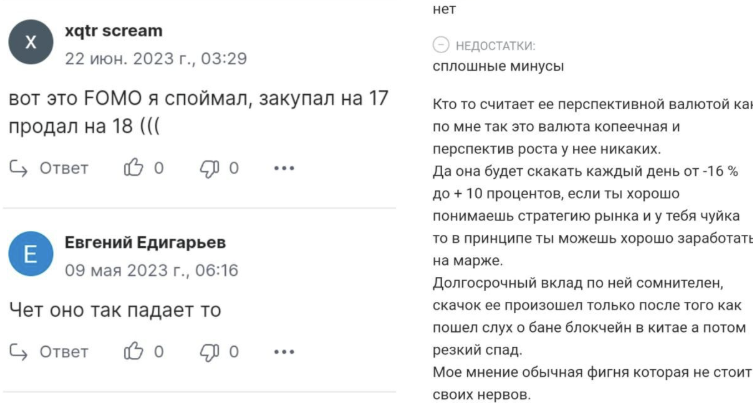 Отзывы о крипте «Ворона» в русскоязычном сегменте интернета преимущественно скептичные и негативные. Их писали люди, которые потеряли деньги из-за инвестирования в данный токен.