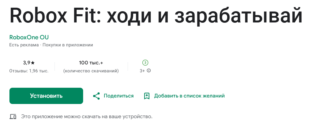 Проект представляет собой приложение для Android и iOS, которое считает шаги и начисляет за это токены Rox, причем у разработчиков есть другие похожие продукты, но там просто нужно раз в три часа нажимать на кнопку. Приложение вышло в мае 2024 года, а судя по информации с Google Play, Robox fit скачали более 100 000 пользователей, хотя средняя оценка 3.9 балла.