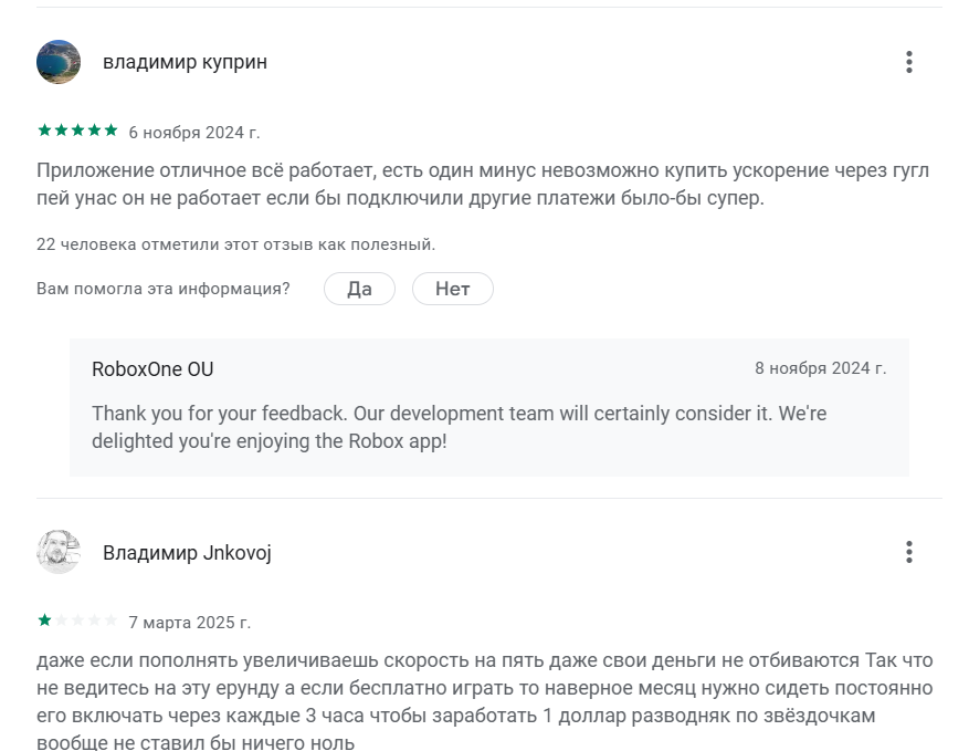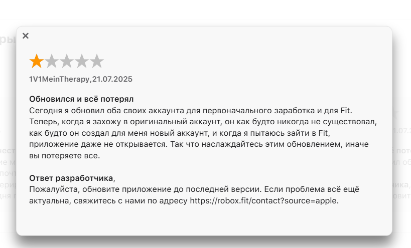 - Приложение Robox fit не предлагает реальных способов оплаты улучшений для жителей России, ограничивая их заработок.
