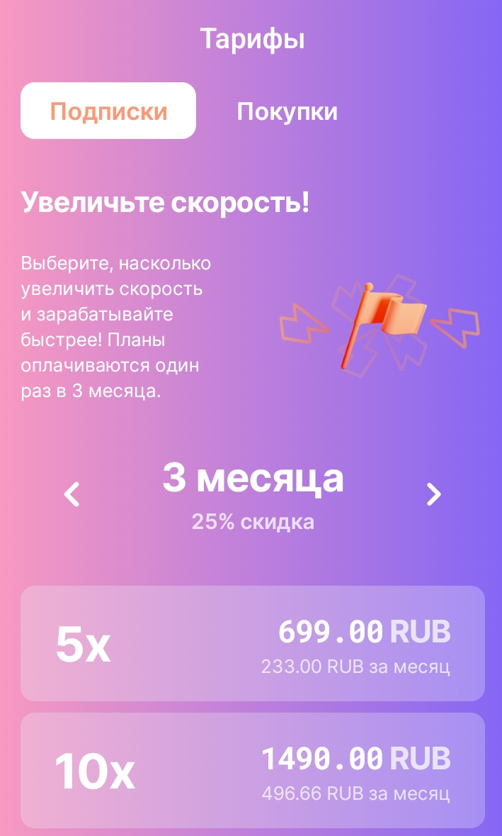 У «Робокс фит» есть улучшения, которые позволяют увеличивать награду за каждый шаг от 5 до 500 раз, но нет калькулятора, чтобы подсчитать, насколько это выгодно, например, минимальный буст будет стоить ₽309 за 30 дней, но при оплате за больший срок предусмотрены скидки.