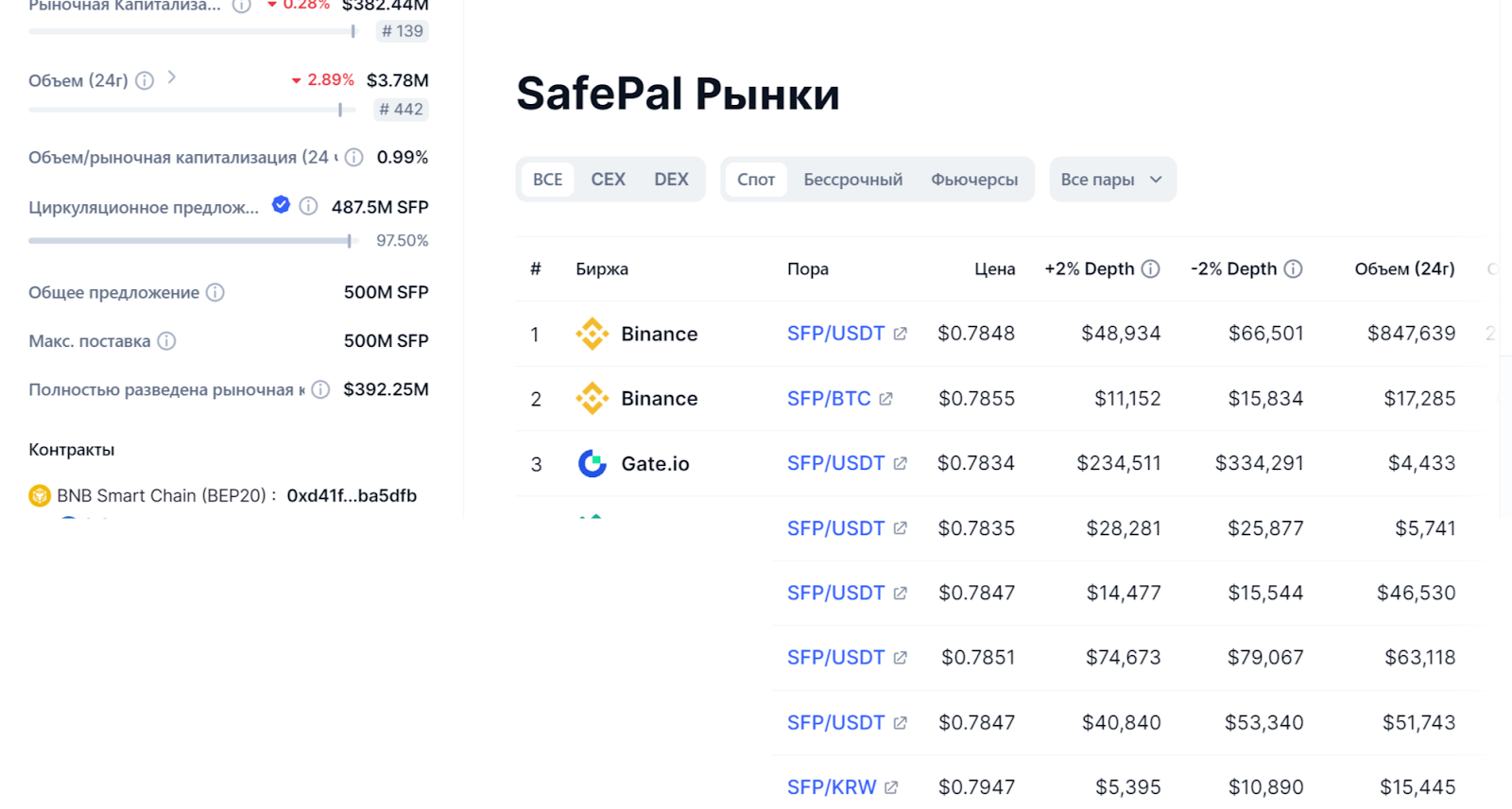 В отзывах о Safe pal нередко упоминается еще одна разработка создателей платформы. Речь идет о Safepal Coins под названием SFP. На сентябрь 2024-го стоимость монеты составляет 0.78 долларов. Капитализация находится на уровне 382 млн долларов, а общее количество монет — 500 млн.