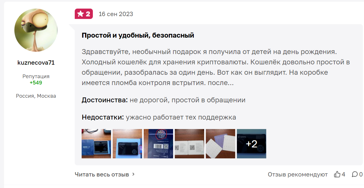 Ситуации, когда Safepal взломали и украли деньги с кошелька, являются крайней редкостью. При этом некоторые минусы пользователи все-таки выделяют. Они касаются плохой работы технической поддержки, высокой цены и сложности настройки.